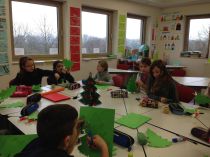 Im Vorfeld hatten Eltern und Lehrerinnen verschiedene Bastelideen gesammelt und die SchülerInnen konnten sich aussuchen, in welcher Gruppe sie mitbasteln wollten. So entstanden fröhliche Engel, Schneemänner, Elche und Pinguine, bunte Weihnachtsbäume und Sterne, stimmungsvoller Christbaumschmuck und Kerzenständer, weihnachtliche Scherenschnitte und Schaukelpferde.