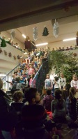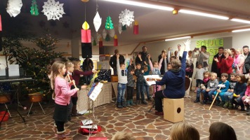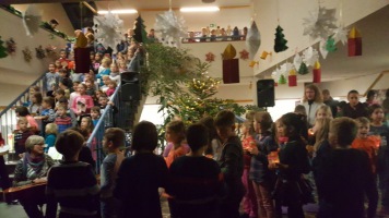 Am Dienstag, den 12.12. öffnete sich das Türchen des Lebendigen Adventskalenders in der Grundschule. Nach einem gemeinsamen Lied zu Beginn musizierten die Schüler der Orff- und der Blockflöten-AG unter Leitung von Frau Gerok. Anschließend zeigten die Zweitklässler einen Kerzentanz, dem ein passendes Lied der Drittklässler folgte. Danach machten sich Viertklässler in einem humorvollen Gedicht Gedanken, wo man Weihnachtsgeschenke am besten verstecken kann. Den Weg der Tiere zum Weihnachtslicht hatten die Erstklässler musikalisch vorbereitet. Nach einem abschließenden gemeinsamen Lied begann der gemütliche Teil: Mit weihnachtlichem Gebäck, das die Eltern gespendet hatten, und Punsch, den der Förderverein der Grundschule ausschenkte, klang dieser schöne Abend aus.