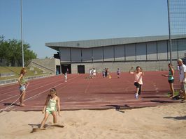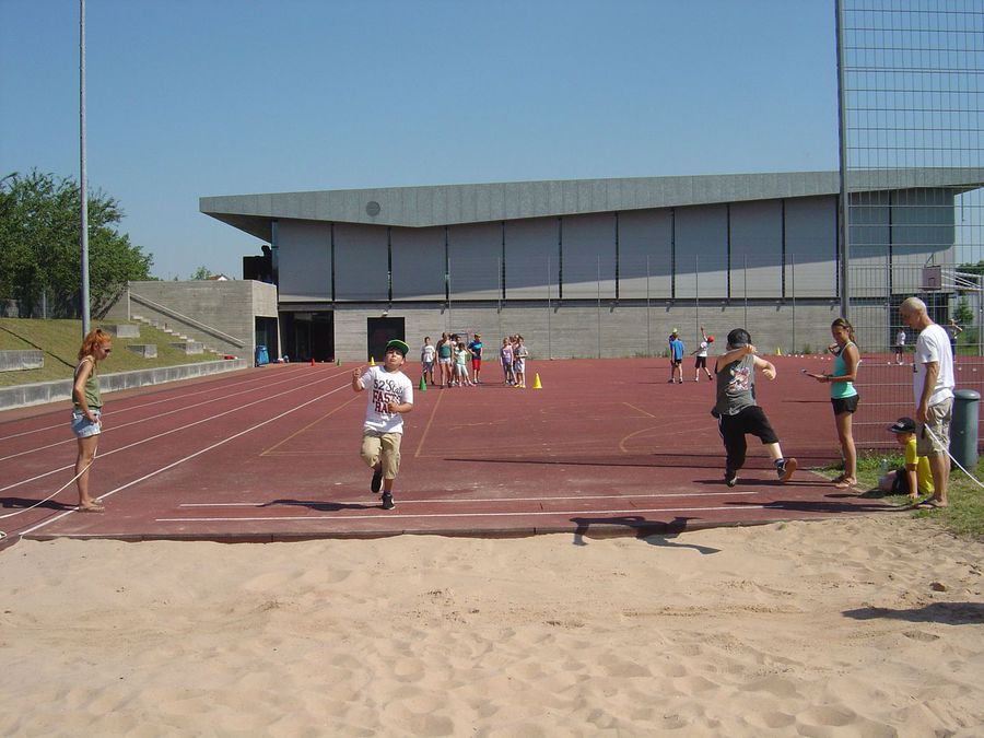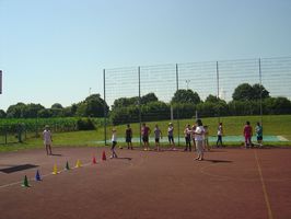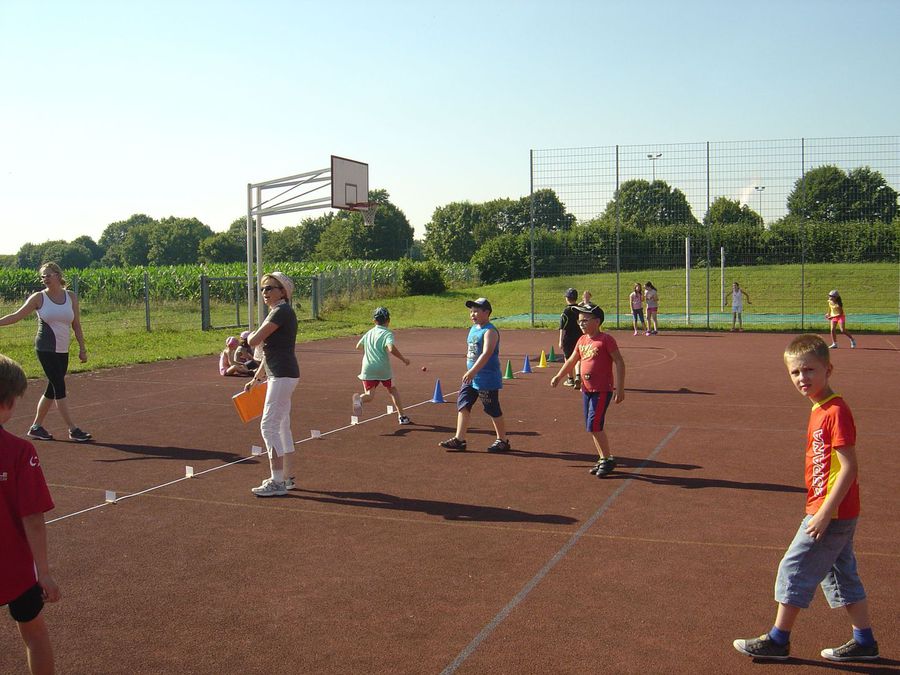 Nach dem gemeinsamen Aufwärmprogramm zeigte jeder Schüler seine Leistungen in den Disziplinen Lauf, Wurf und Sprint.