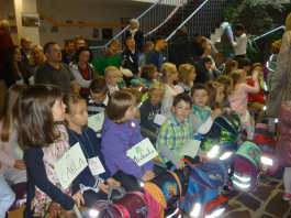 Herr Landvatter überreichte den Klassenlehrerinnen Frau Jany und Frau Deichsel noch ein Geschenk für jedes Kind und dann durften sie in ihr neues Klassenzimmer gehen.