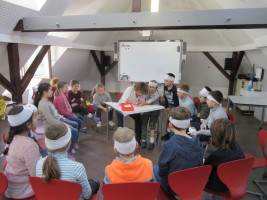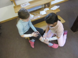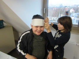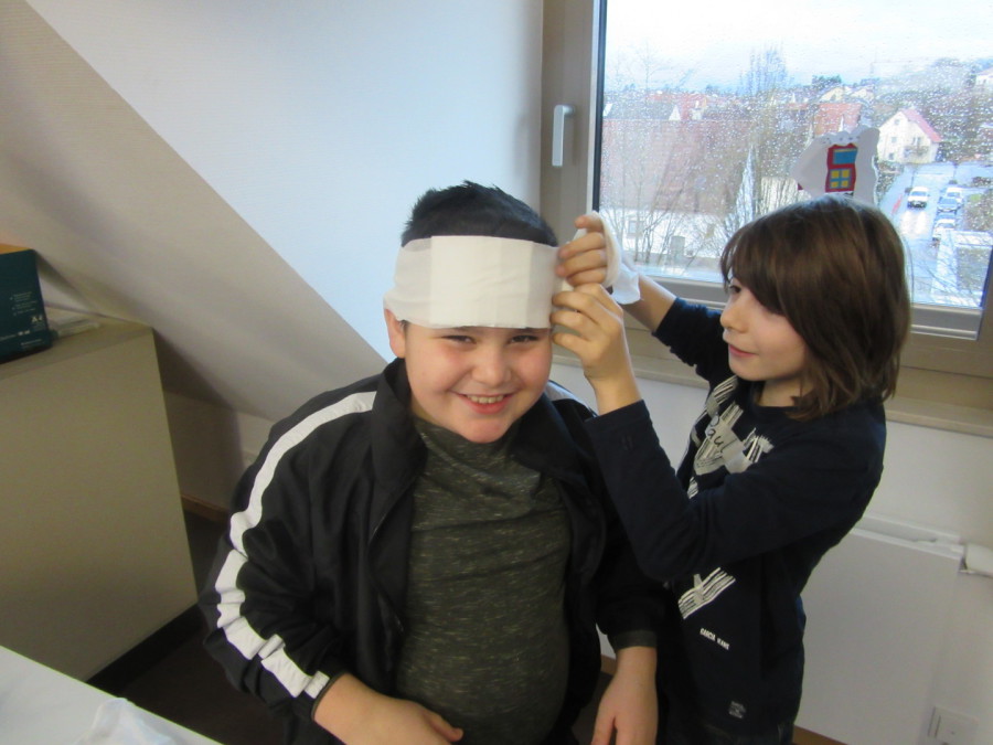 Am zweiten Tag haben wir uns selbst Verbände angelegt. Dabei durften wir auch Kunstblut benutzen.