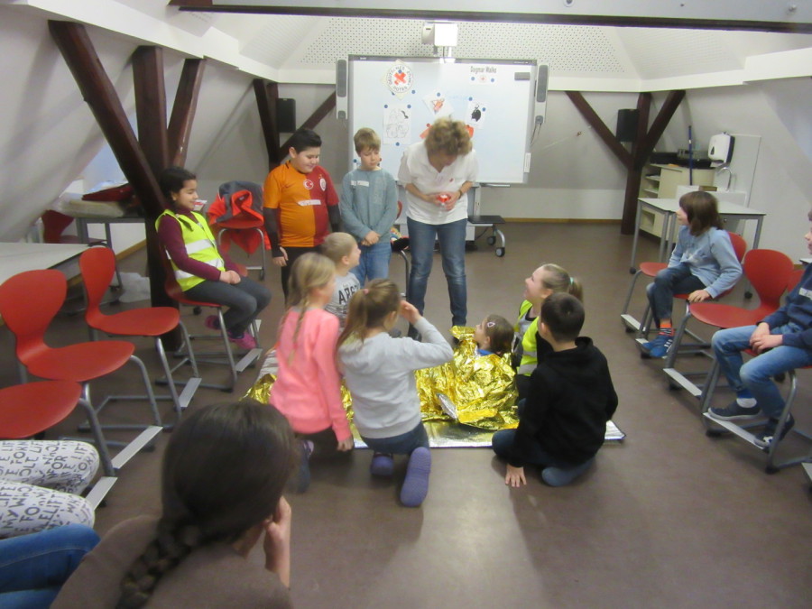 An jeweils zwei Tagen hatten die Klasse 3a und die Klasse 3b einen Erste-Hilfe-Kurs mit Frau Walko vom Deutschen Roten Kreuz Heilbronn.