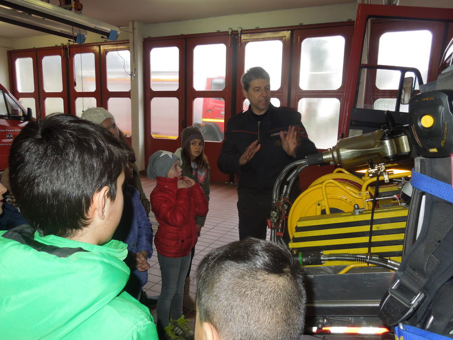 Nach der Begrüßung hat uns der Feuerwehrmann in Gruppen aufgeteilt.