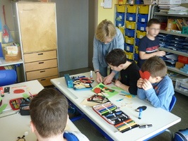 Während in den Gärten die ersten Blumen Farbe ins Leben zaubern, wurden im Schulhaus fleißige Bastler aktiv. Am Dienstag, 10.3. wurde in allen Zimmern eifrig gefaltet, geschnitten, gemalt und geklebt.