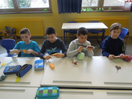 Viele kleine Hände schnitten, klebten und webten an verschiedenen Bastelarbeiten, die dann unser Schulhaus dekorieren sollen.
