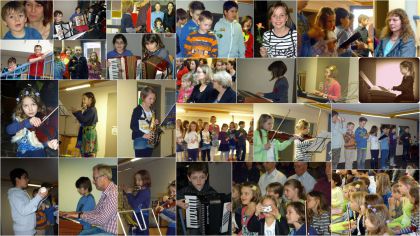 Eröffnet wurde das Konzert von der Akkordeon-AG (Leitung: Frau Rau) und der Percussion-AG (Leitung: Herr Ackermann). Danach gaben Schüler und Schülerinnen der Klassen 2 – 4 alleine oder zu zweit Kostproben ihres Könnens auf Querflöte, Saxophon, Violine, Akkordeon, Keyboard und Klavier. Mit großem Eifer standen die Nachwuchskünstler auf der Bühne und verwöhnten ihr Publikum mit Musik, die vom Kinderlied bis zur Klassik fast alles abdeckte. Den großen Applaus, den sie dafür erhielten, hatten sie sich wirklich verdient!