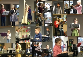 Gegen 18 Uhr beendete Jotham Schwarzkopf aus der Klasse 4a das Frühlingskonzert mit 2 fetzigen Stücken, die er auf seinem Akkordeon spielte.