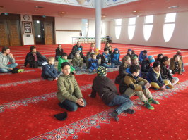 Die beiden Klassen 4a und 4b der Grundschule Untereisesheim besuchten im Rahmen ihres Religionsthemas: ,,Muslime“ die Moschee in Neckarsulm. Es war ein besonderes Erlebnis, denn in ein Gebetshaus der Muslime kommt man ja nicht alle Tage. Man darf nicht mit Schuhen in eine Moschee gehen das ist aber nicht schlimm, denn dort ist überall Teppichboden. Die Größe des Gebäudes war sehr beeindruckend. Die Moschee ist im Inneren mit goldenen Schriftzügen verziert. In der Mitte des Gebetraumes hängt ein gigantisch schöner Kronleuchter. Mann und Frau beten in getrennten Räumen.