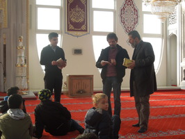 Bei der Führung durch die Moschee erfuhren wir einiges über den Islam: Zum Beispiel über den Fastenmonat Ramadan, der einer der 5 Säulen des Islams ist. Die weiteren Säulen sind: Das Glaubenszeugnis, die täglichen fünf Pflichtgebete, die jährliche Pflichtabgabe (2,5% des Einkommens) und die Pilgerfahrt nach Mekka und Medima.