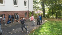 Unser 2. Tag stand ganz unter dem Motto „Steinzeit“. Auf dem Gelände der Jugendherberge entführte uns ein Steinzeitexperte in die Welt von Mammut und Säbelzahntiger. Sowohl Kinder, als auch Betreuer, durften erleben, wie mühsam es ist einen Stock ohne Hilfe eines Messers anzuspitzen. Auch das Entfachen eines Feuers mit Feuersteinen und Holzspänen stellte für unsere Vorfahren eine wahre Herausforderung dar.