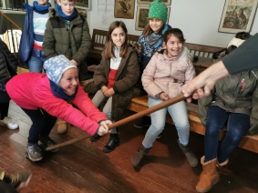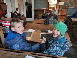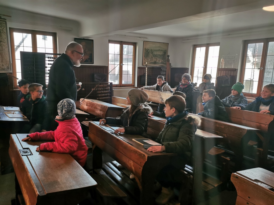 Am 27.01.2020 waren wir mit den zwei anderen dritten Klassen im Schulmuseum in Obersulm-Weiler. Wir haben dort Herrn Holzinger kennengelernt. Er hat uns gezeigt, wie man früher eine Schulglocke geläutet hat. Dann hat er uns durch das Schulmuseum geführt und uns viele alte Dinge, wie ein Milchkännchen oder ein Waschbrett, gezeigt. Er hat uns erklärt, dass vor 150 Jahren die meisten Lehrer Nebenjobs hatten, wie Schuster oder Bauer. Danach hat er uns in ein altes Klassenzimmer geführt. Dort hat er uns gezeigt, wie man einem Kind zur Bestrafung eine Tatze gab oder es auf den Popo haute. Wir durften auf einer Schiefertafel mit dem Griffel unsere Namen in Sütterlinschrift (so hat man früher geschrieben) schreiben. Außerdem haben wir einen tollen Rechentrick zum Malrechnen gelernt. Anschließend haben wir erfahren, dass die Mädchen früher den Schulboden bohnern mussten. Herr Holzinger zeigte uns wie das ging: Ein Kind sollte sich auf einen Besen stellen als Zusatzgewicht. Er hat uns erklärt, dass das Zusatzgewicht dafür da ist, mehr Glanz auf den Boden zu bringen. Auch das Klo hatte einen seltsamen Namen: es hieß Abort. Wir hatten viel Spaß und es war ein toller Ausflug. Im Bus haben wir noch viel Quatsch gemacht.