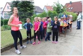 Am Samstag war es dann soweit: Bei angenehm kühlem Wetter versuchten die Schüler in jeweils einer halben Stunde pro Klassenstufe so viele Runden wie möglich zu erlaufen. Alle zusammen schafften insgesamt 1028 Runden. Dazu kamen noch 28 Runden von Frau Birgit Osterziel (Kernzeitbetreuung, Hausaufgabenbetreuung, AGs), die tapfer die ganzen zwei Stunden mitlief.